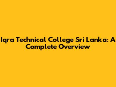 Iqra Technical College Sri Lanka: A Complete Overview