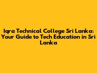 Iqra Technical College: Your Guide To Tech Education In Sri Lanka
