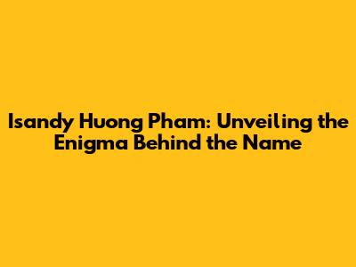 First off, who exactly is Isandy Huong Pham? That's the million-dollar question, right? It could be an artist, a tech guru, a humanitarian, or maybe even someone who’s just killing it on social media. Without specifics, it's tough to pinpoint their exact role. But that's part of the fun, yeah? We get to dig around, put the pieces of the puzzle together, and learn something new in the process. We're talking about someone who, for some reason, has piqued your interest (and mine!). So, the goal here is to get to the bottom of the story, understand their background, and hopefully, uncover what makes them, well, them.