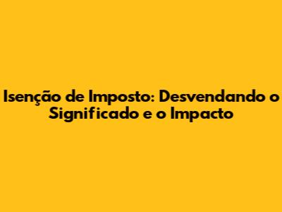 O Que é Exatamente a Isenção de Imposto?