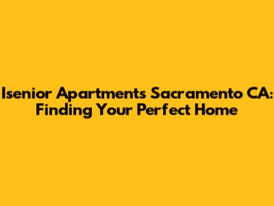Isenior Apartments: Find Your Perfect Sacramento CA Home