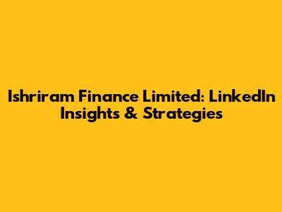 Ishriram Finance Limited: LinkedIn Insights & Strategies