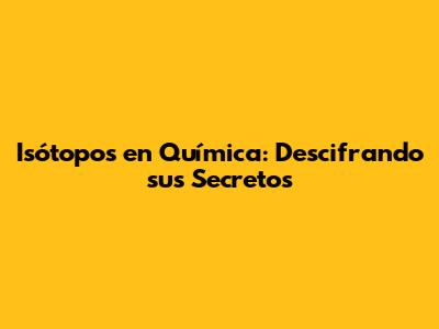 Isótopos En Química: Descifrando Sus Secretos