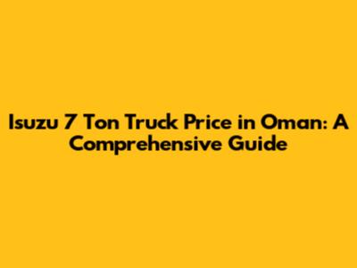 Isuzu 7 Ton Truck Price In Oman: A Comprehensive Guide