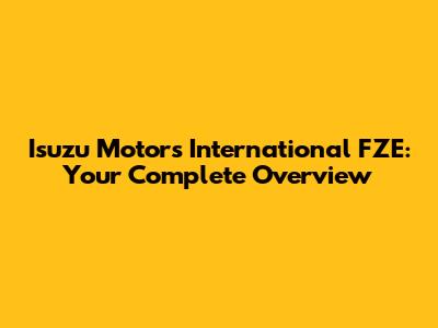 Isuzu Motors International FZE: Your Complete Overview