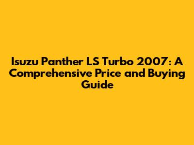 Hey there, car enthusiasts! Ever found yourself wondering about the Isuzu Panther LS Turbo 2007 and its current market price? Well, you're in the right place! We're diving deep into the details, providing you with a complete guide to understanding the price, features, and everything else you need to know before potentially getting behind the wheel of this classic ride. This article isn't just about the price tag; it's about making sure you get the best deal and understand what you're buying. So, grab your coffee, sit back, and let's explore the world of the Isuzu Panther LS Turbo 2007!