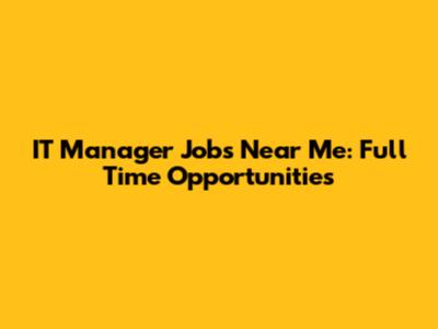 IT Manager Jobs Near Me: Full Time Opportunities