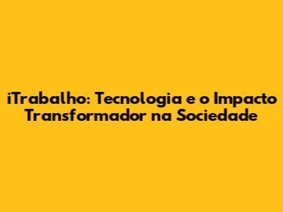 ITrabalho: Tecnologia E Impacto Na Sociedade