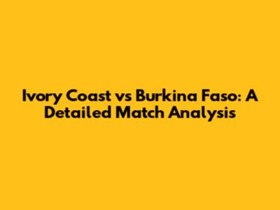 Ivory Coast Vs Burkina Faso: Match Analysis