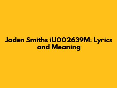 "iU002639M" is more than just a song; it's a sonic journey that invites you to reflect on your own existence. With its thought-provoking lyrics, unique sound, and undeniable authenticity, it's no wonder this track has resonated with so many fans worldwide. So, crank up the volume, dive into the lyrics, and let Jaden's musical genius take you on a ride. You might just discover something new about yourself along the way.