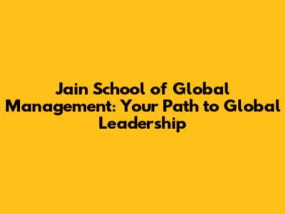 Jain School Of Global Management: Your Path To Global Leadership