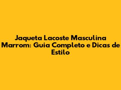 Jaqueta Lacoste Masculina Marrom: Guia Completo E Dicas De Estilo