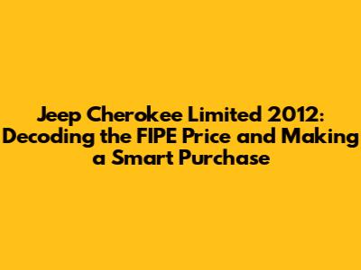 Hey there, Jeep enthusiasts and potential Cherokee Limited 2012 buyers! If you're looking for information on the FIPE price for the 2012 Jeep Cherokee Limited, you've come to the right place. This article will be your go-to resource, covering everything from understanding the FIPE table to making a smart buying decision. We'll delve into what the FIPE price actually means, how to find it, and how to use it to your advantage when negotiating. Plus, we'll give you a heads-up on what to look for when inspecting a used 2012 Cherokee Limited. Let's get started!