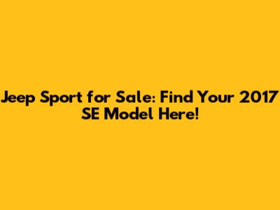 Hey guys! Are you on the hunt for a reliable and rugged ride? Look no further! We’re diving deep into the world of the Jeep Sport, specifically the 2017 SE model, and how you can snag one for yourself. Whether you're an off-road enthusiast or just need a dependable daily driver, the Jeep Sport is a fantastic choice. Let’s explore what makes this vehicle so appealing and where you can find one that fits your needs. Get ready to embark on an exciting journey to discover your next adventure companion!