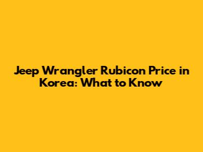 Jeep Wrangler Rubicon Price In Korea: What To Know