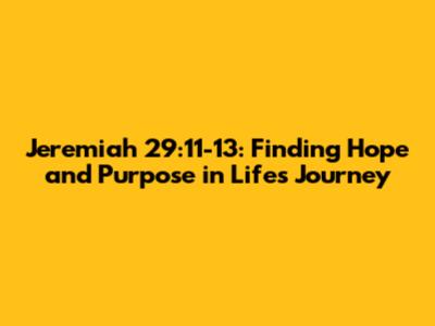 Jeremiah 29:11-13: Finding Hope And Purpose