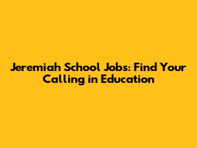 Jeremiah School Jobs: Find Your Calling In Education