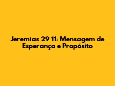 Jeremias 29 11: Mensagem De Esperança E Propósito