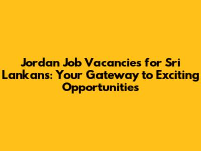 Are you a Sri Lankan looking for promising job opportunities abroad? Jordan job vacancies might just be the perfect fit for you! In this article, we'll dive deep into the various sectors in Jordan that are actively hiring, the types of jobs available, and how you can prepare yourself to land your dream job in this beautiful country. Whether you're seeking a career change or exploring international opportunities, Jordan offers a diverse range of options that can help you achieve your professional goals. Let's explore the landscape of Jordan job vacancies and how Sri Lankans can seize these opportunities.