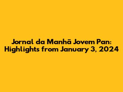 Jornal Da Manhã Jovem Pan: Highlights From January 3, 2024
