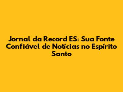 Jornal Da Record ES: Notícias E Cobertura Completa