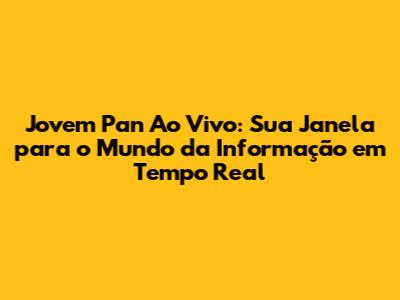 Jovem Pan Ao Vivo: Notícias E Análises Em Tempo Real