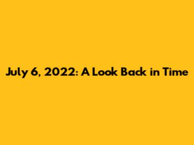 The Significance of July 6, 2022