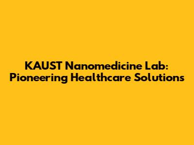 KAUST Nanomedicine Lab: Pioneering Healthcare Solutions