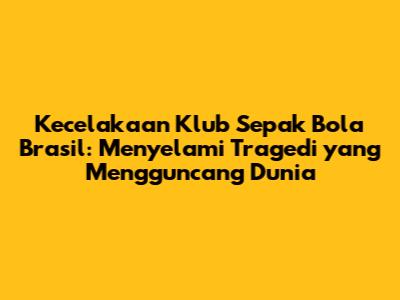 Kecelakaan klub sepak bola Brasil adalah sebuah tragedi yang merenggut nyawa dan meninggalkan luka mendalam bagi dunia olahraga. Peristiwa ini tidak hanya menjadi berita duka bagi para penggemar sepak bola di Brasil, tetapi juga menjadi perhatian global. Dalam artikel ini, kita akan membahas secara mendalam mengenai tragedi ini, mulai dari kronologi kejadian, dampak yang ditimbulkan, hingga pelajaran yang bisa kita ambil. Kita akan menyelami lebih dalam mengenai klub sepak bola Brasil yang terkena musibah, pemain yang menjadi korban, serta bagaimana komunitas sepak bola dunia memberikan dukungan.