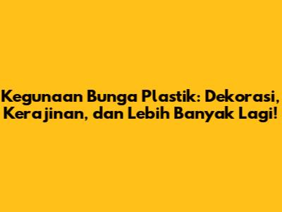 Kegunaan Bunga Plastik: Dekorasi, Kerajinan, Dan Lebih Banyak Lagi!