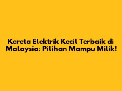 Hey guys! Korang tengah cari kereta elektrik kecil kat Malaysia? Baguslah! Sekarang ni, kereta elektrik makin popular sebab mesra alam dan jimat minyak. Tapi, dengan lambakan model kat pasaran, mana satu yang terbaik dan mampu milik? Jangan risau, aku dah buat research dan nak share dengan korang semua. Jom kita tengok!