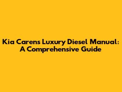 Kia Carens Luxury Diesel Manual: A Detailed Look