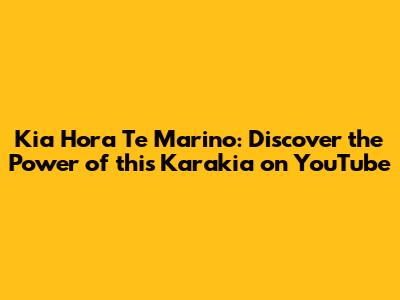 Kia Hora Te Marino: Discover The Power Of This Karakia On YouTube