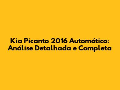 Kia Picanto 2016 Automático: Análise Completa