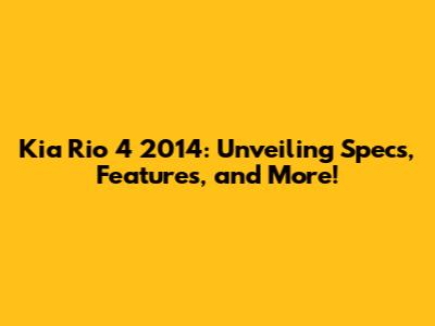 Kia Rio 4 2014: Specs, Features & More!