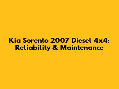 Kia Sorento 2007 Diesel 4x4: Reliability & Maintenance