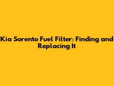 Kia Sorento Fuel Filter: Location And Replacement Guide