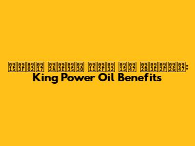 किंग पावर ऑयल के फायदे: King Power Oil Benefits
