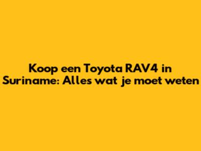 Koop Een Toyota RAV4 In Suriname: Alles Wat Je Moet Weten