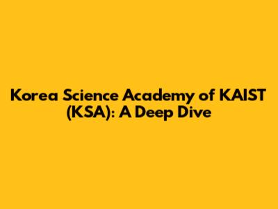 Korea Science Academy Of KAIST (KSA): A Deep Dive