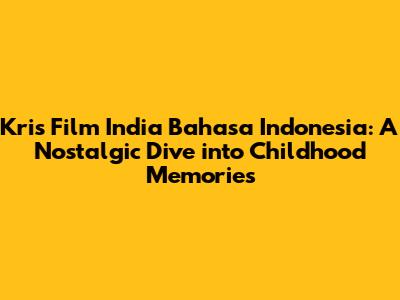 Kris Film India Bahasa Indonesia: A Lasting Legacy