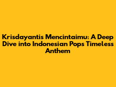 Impact and Legacy of Krisdayanti's 'Mencintaimu'