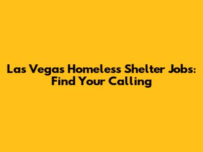 Las Vegas Homeless Shelter Jobs: Find Your Calling