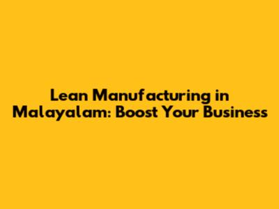Lean Manufacturing In Malayalam: Boost Your Business
