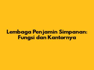 Lembaga Penjamin Simpanan: Fungsi Dan Kantornya