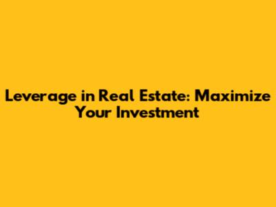Leverage In Real Estate: Maximize Your Investment