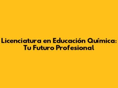 Licenciatura En Educación Química: Tu Futuro Profesional