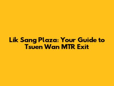 Hey guys! Ever find yourself wandering around Tsuen Wan, trying to figure out the quickest way to Lik Sang Plaza from the MTR? You're not alone! Navigating Hong Kong's MTR exits can sometimes feel like a mini-adventure. But don't sweat it, because this guide is here to make your life a whole lot easier. We'll break down exactly which exit to take, what to expect along the way, and maybe even throw in a few insider tips to make your trip super smooth. So, let's dive in and get you to Lik Sang Plaza in no time!