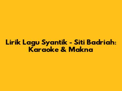 Lirik Lagu Syantik - Siti Badriah: Karaoke & Makna