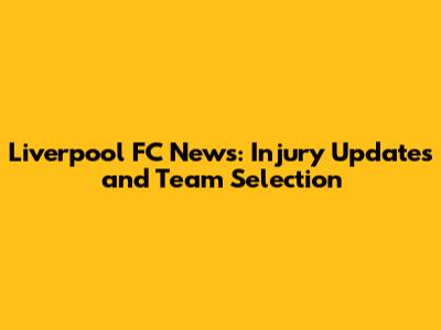 Liverpool FC News: Injury Updates And Team Selection